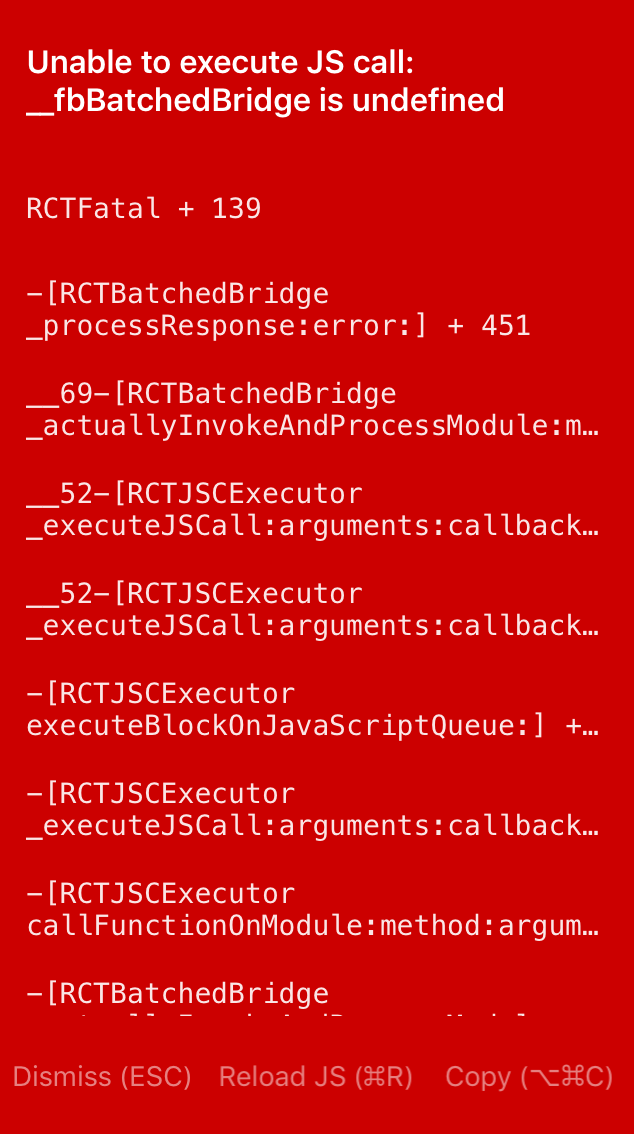 3. Unable to execute JS call: __fbBatchedBridge is undefined on iOS